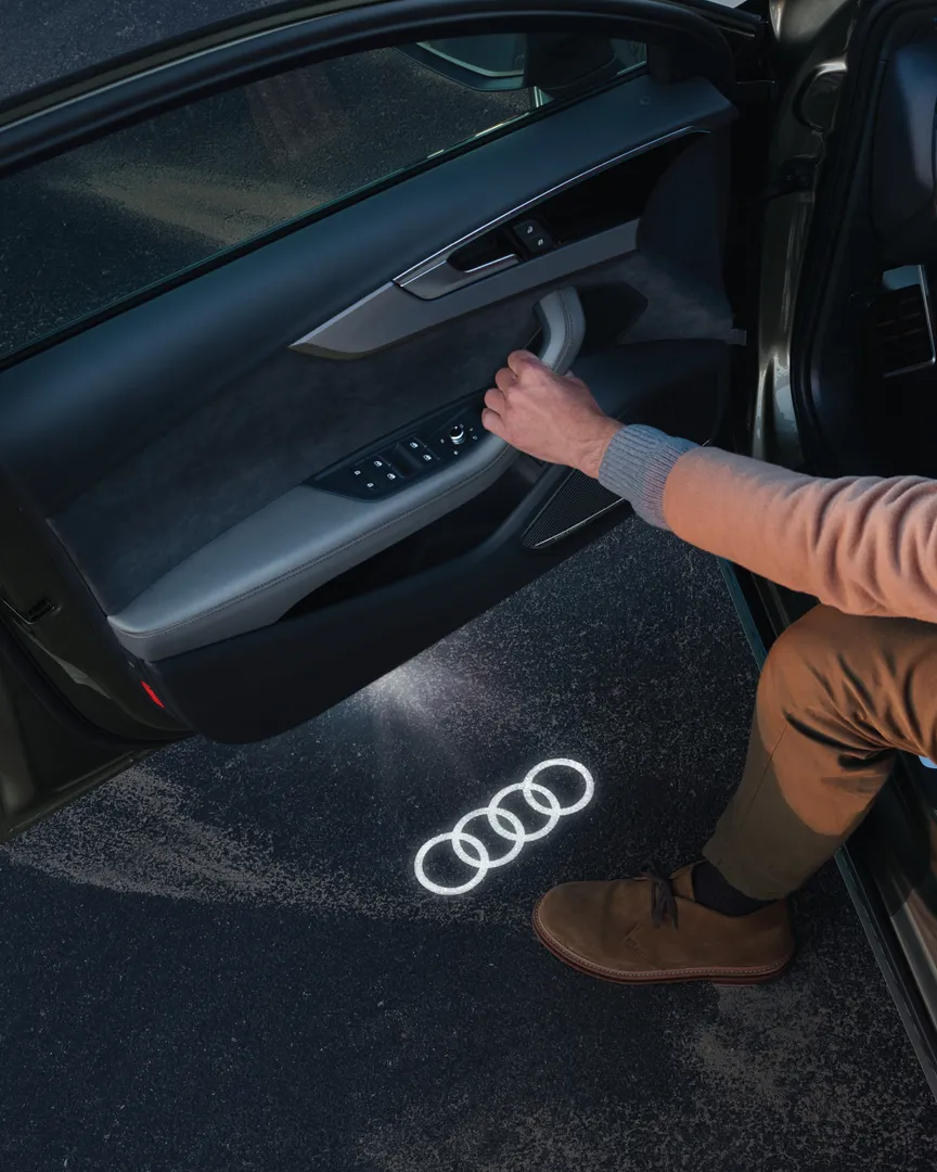 - Audi rings entry LED lamps that create a striking welcome light projection
