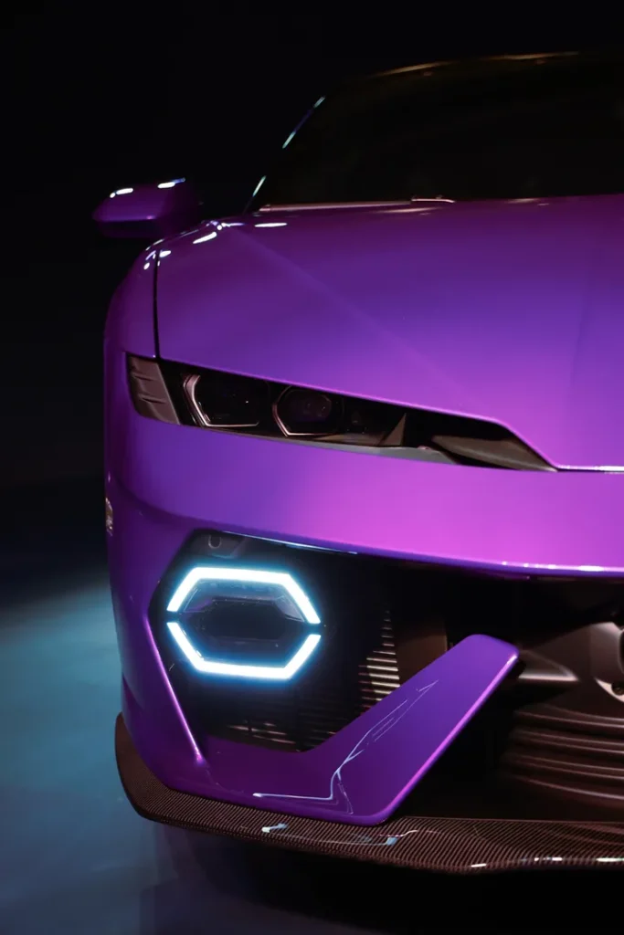 Each individual element was designed to contribute to excellent aerodynamic performance. Starting with the front, where the DRLs have also become aerodynamic elements, the hexagonal lights with dedicated air intakes and deflectors have the task of conveying airflow from the bumper to the upper part of the side radiators, where two fins have been installed on the inlets. The upper fin with a wing-shaped profile diverts the flow downwards, which is captured by the second horizontal fin, directing it to enter the radiator perpendicularly and maximizing cooling efficiency.