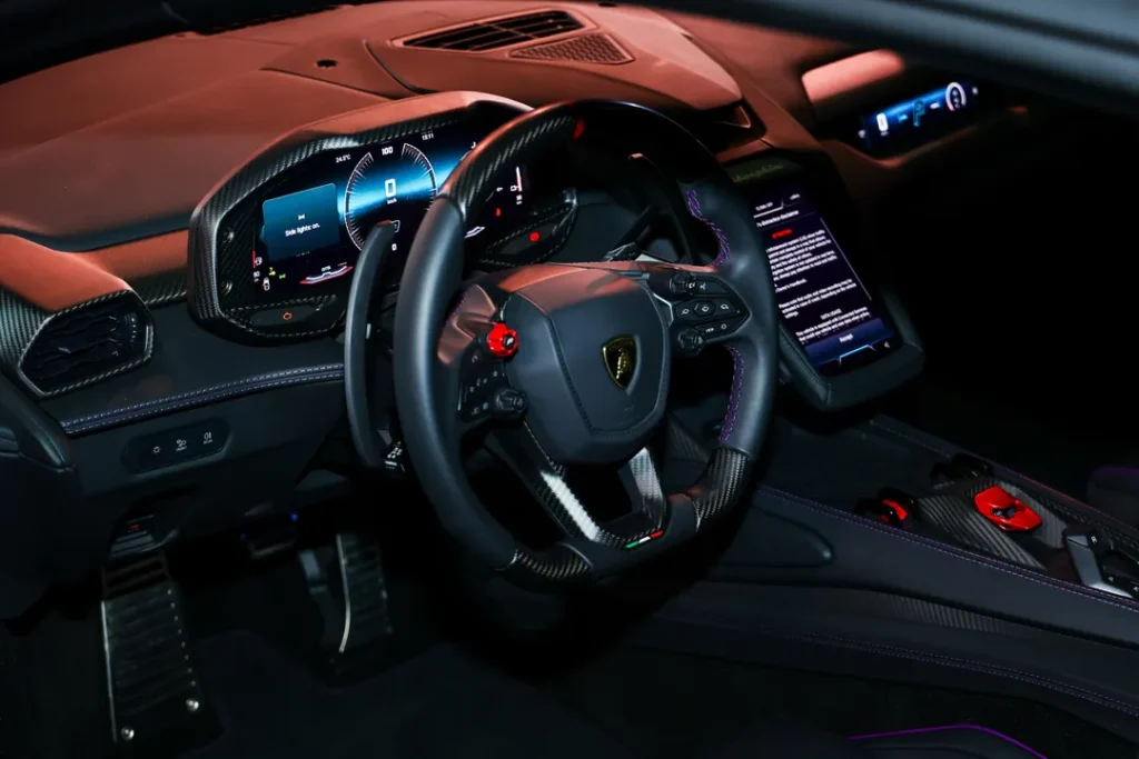 The interior of the Temerario has been completely redesigned compared to the Huracán, while at the same time further developing the design language first seen on the Revuelto. Thanks to the new spaceframe chassis, the Temerario offers significantly more interior space than its predecessor. A low and ergonomic seating position offers the pilot and co-pilot a perfect connection and integration with the vehicle while at the same time providing a high level of comfort, true to the Lamborghini philosophy of “Feel like a pilot”.